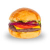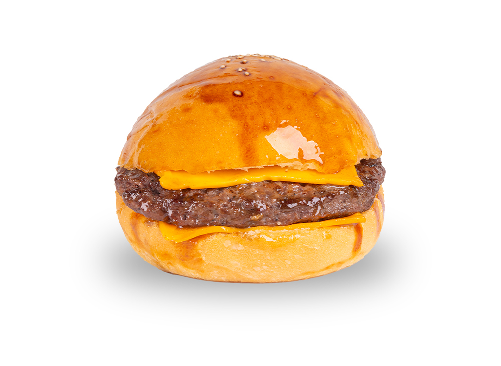 Burger köftesi, karamelize soğan, cheddar peyniri