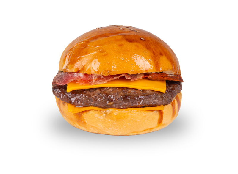 Tekli burger köfte, karamelize soğan, cheddar peyniri, antrikot, pastırma