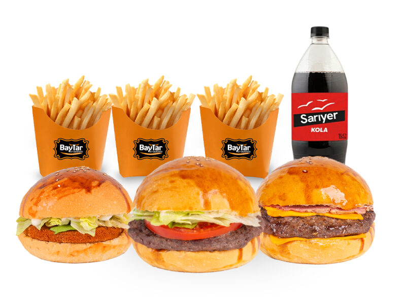 Şnitzel Burger + Şef Burger + Special Baytar Burger + 3 Adet Patates Kızartması (Orta) + İçecek (1 L.)