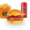 Şef Burger (Burger köftesi, marul, domates, mayonez) + Patates Kızartması (Orta Boy) + Kutu İçecek
